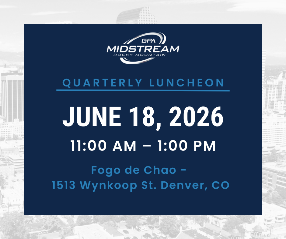 Join us for the GPARMC Regional Conference DATE: Thursday, November 5, 2026 TIME: TBD LOCATION: Marriott Denver Tech Center As a member of the GPA Midstream Rocky Mountain, you will need to log in to your membership account to recess access to registration and to attend member-only events. Log in with your unique username and […]