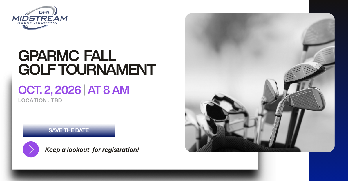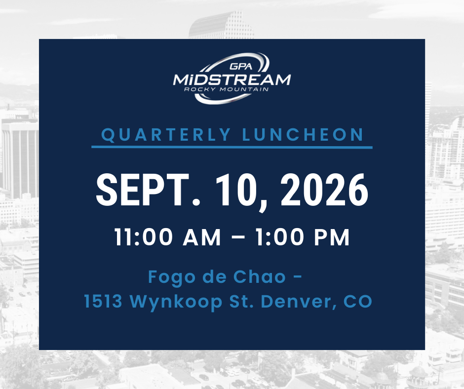 Join us for the GPARMC Fall Golf Tournament DATE: Friday, October 2, 2026 TIME: 7 a.m. to 5 p.m. LOCATION: TBD This is a Members-only Event As a member of the GPA Midstream Rocky Mountain, you will need to log in to your membership account to recess access to registration and to attend member-only events. […]