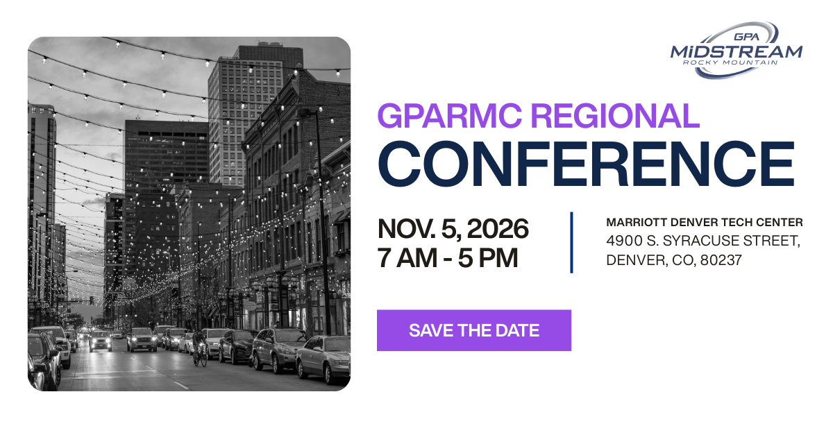 Denver Marriott Tech Center 4900 S. Syracuse Street, Denver, AustriaJoin us for the GPARMC Regional Conference DATE: Thursday, November 5, 2026 TIME: TBD LOCATION: Marriott Denver Tech Center As a member of the GPA Midstream Rocky Mountain, you will need to log in to your membership account to recess access to registration and to attend member-only events. Log in with your unique username and […]